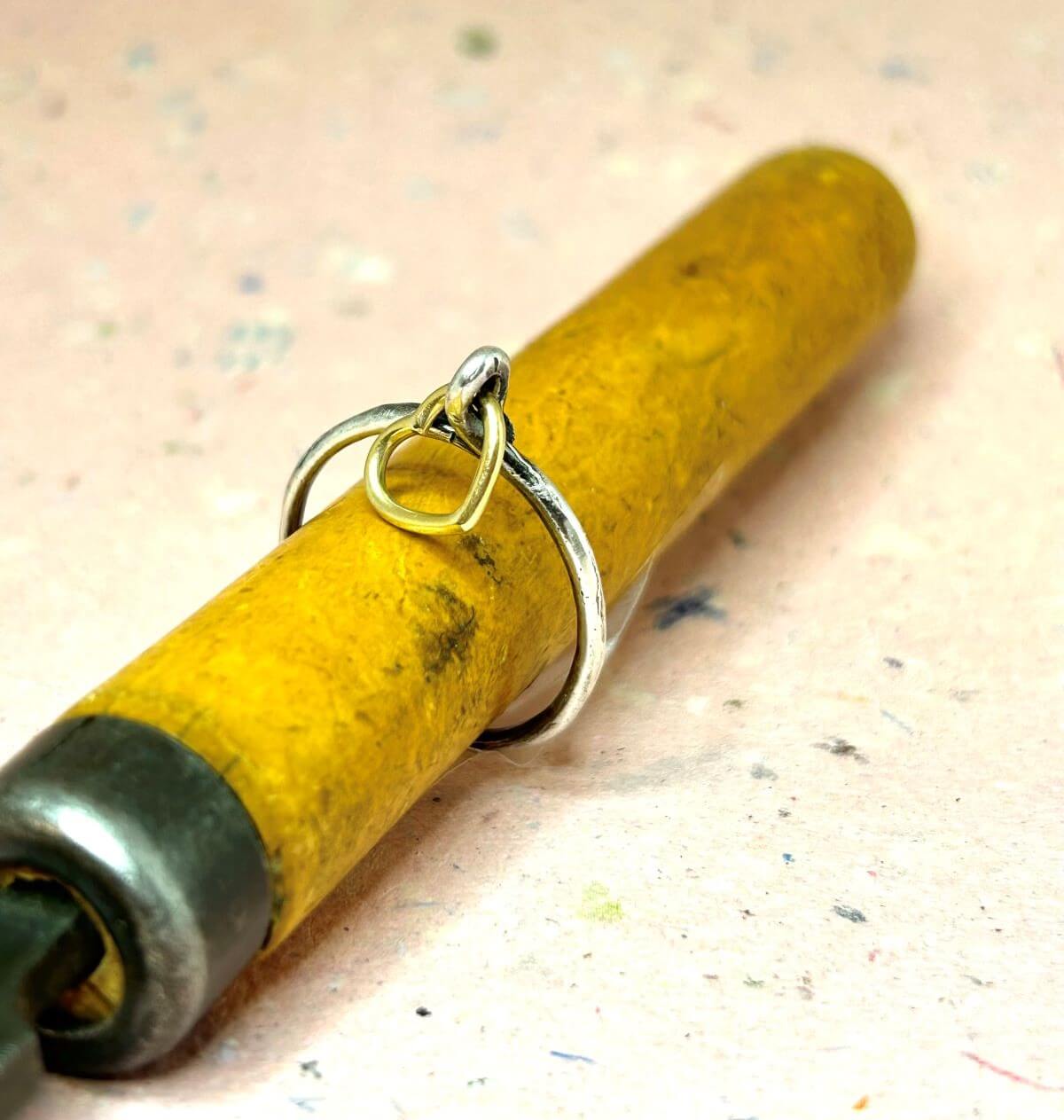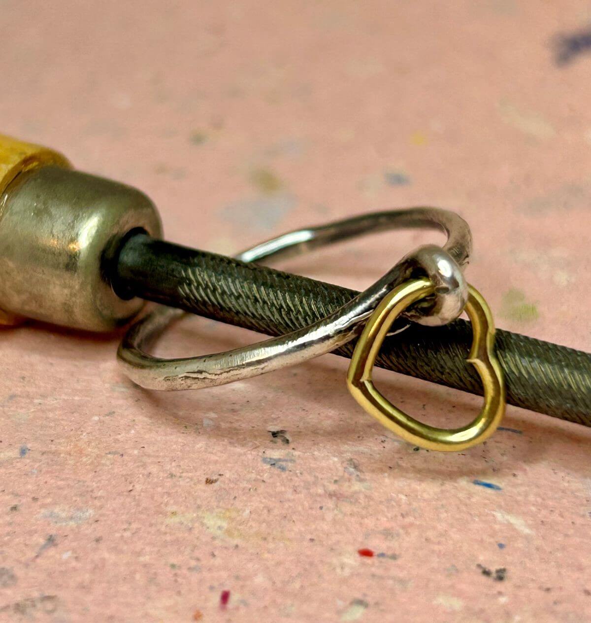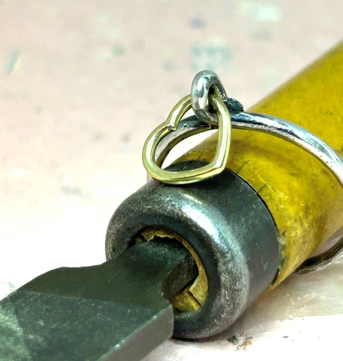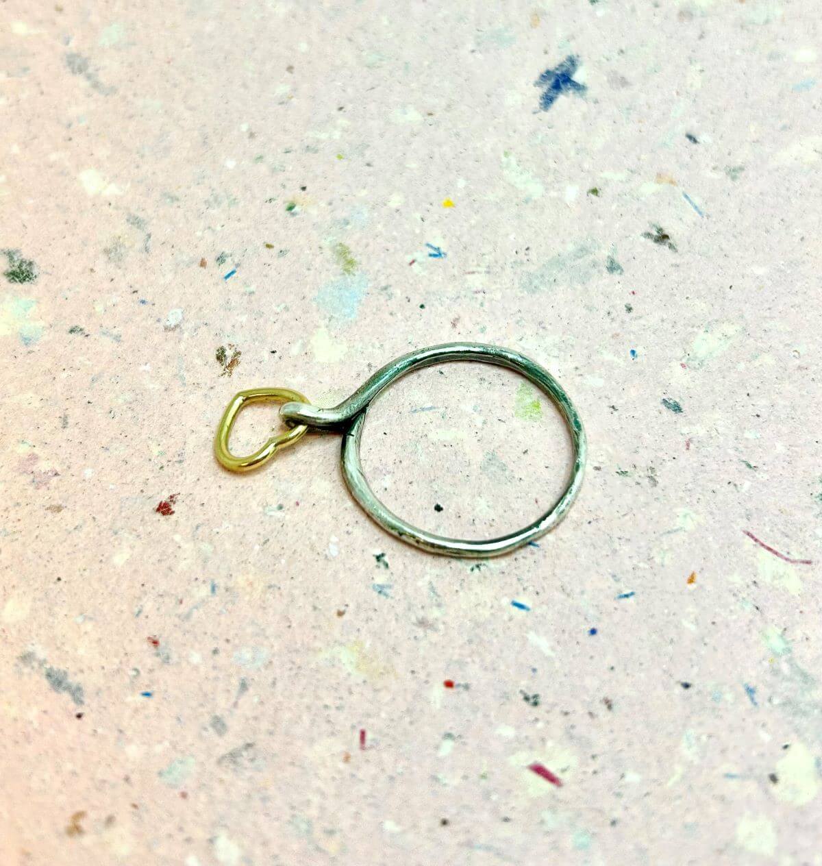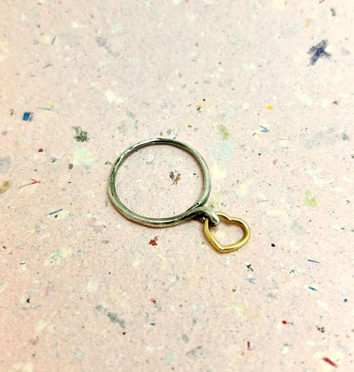 Anell de plata 925 envellida amb cor d’or groc (18K) d’un cm de diàmetre penjant.