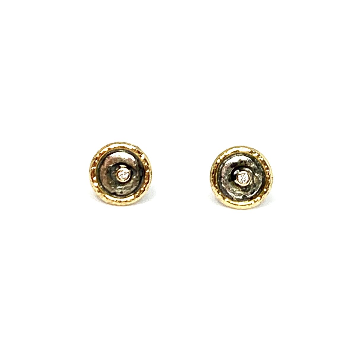 Arracades amb cercles d’or groc de 18 quirats, plata 925 i diamant.