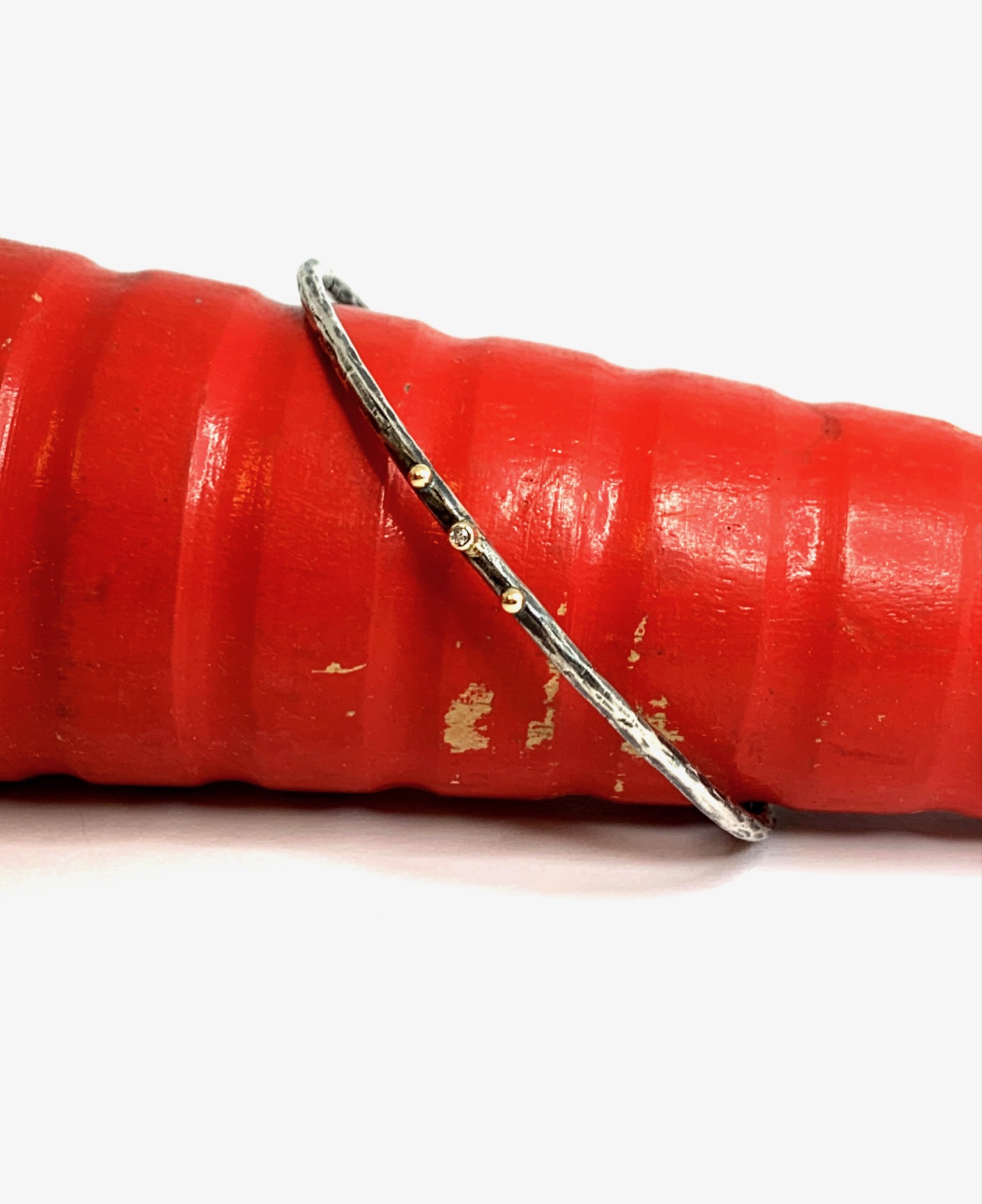 Braçalet esclava de plata 925 massissa, amb diamant central i dos piquets d’or groc (18Kt).