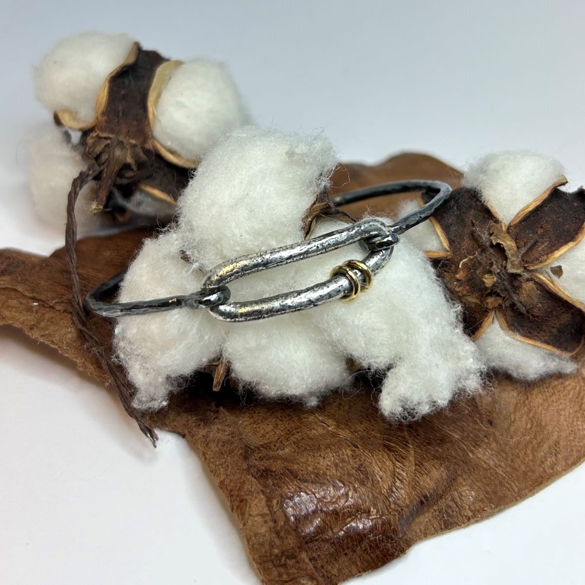 Braçalet de plata, massís, rígid i amb tanca.