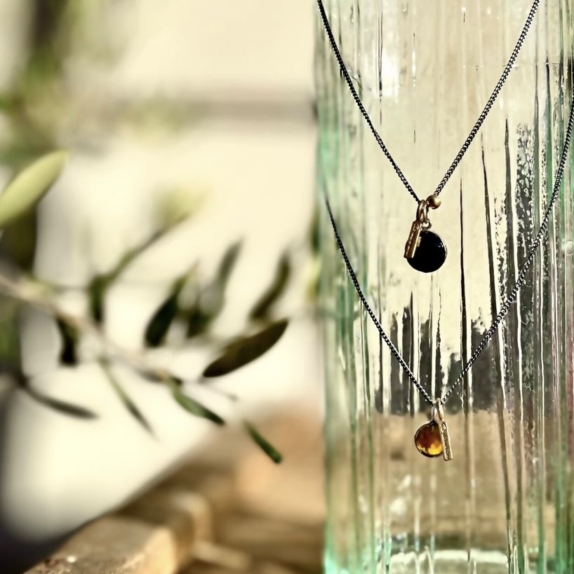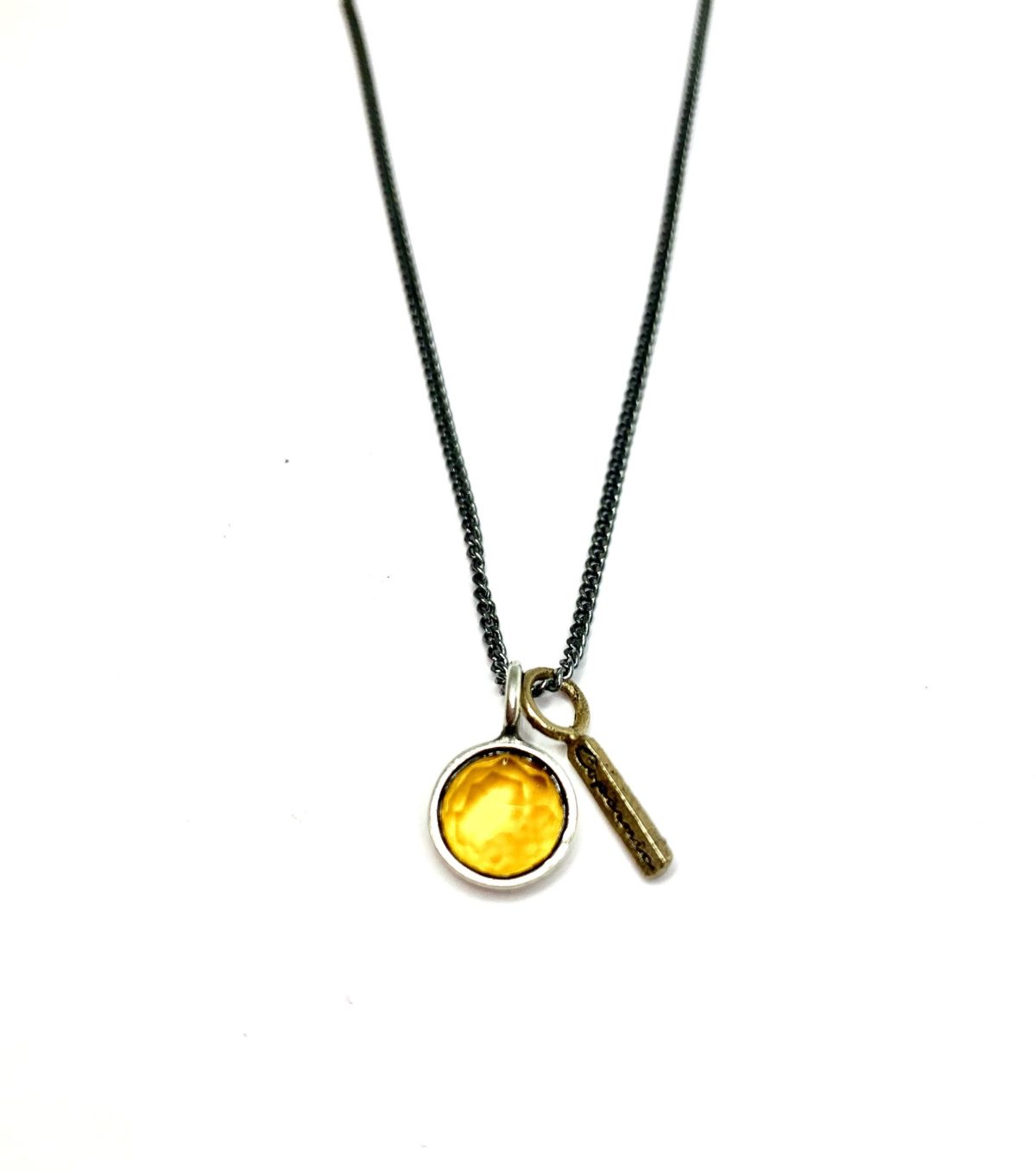 Collaret amb penjoll de cristall color ocre (1 cm de diàmetre).