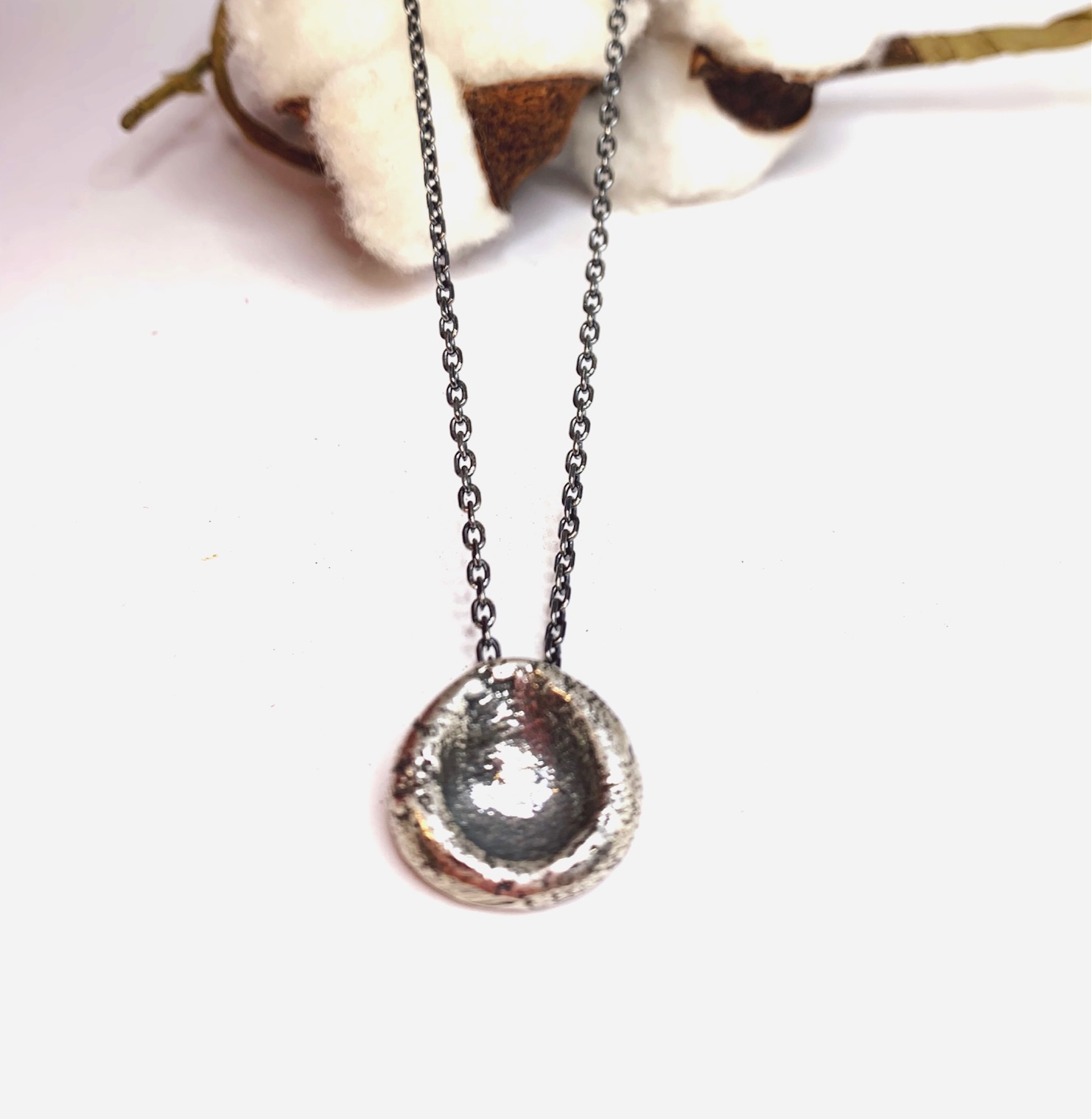 Inici Col·leccions Col·lecció Flor de Cotó Collaret penjoll rodó plata
