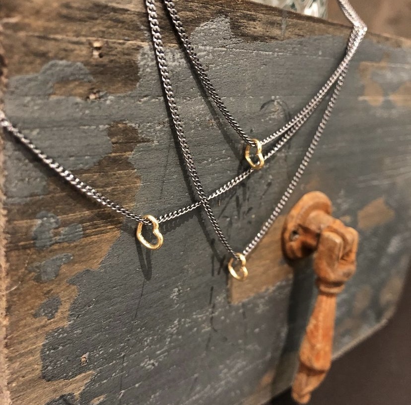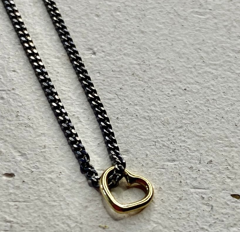 Collaret amb cadena de plata 925 envellida i penjoll cor petit d’or groc 18 Kt (7 mm)