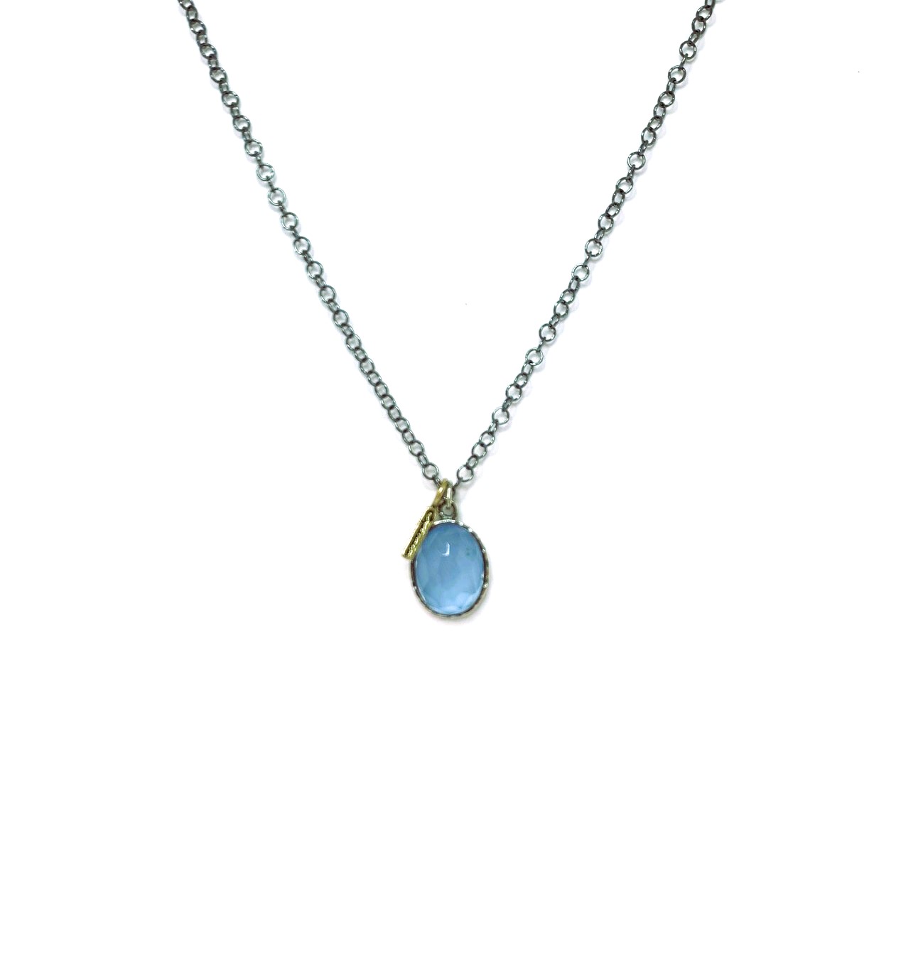 Collaret amb cadena de plata 925 envellida i penjoll de cristall ovalat facetat blau (2 cm x 1,5 cm)