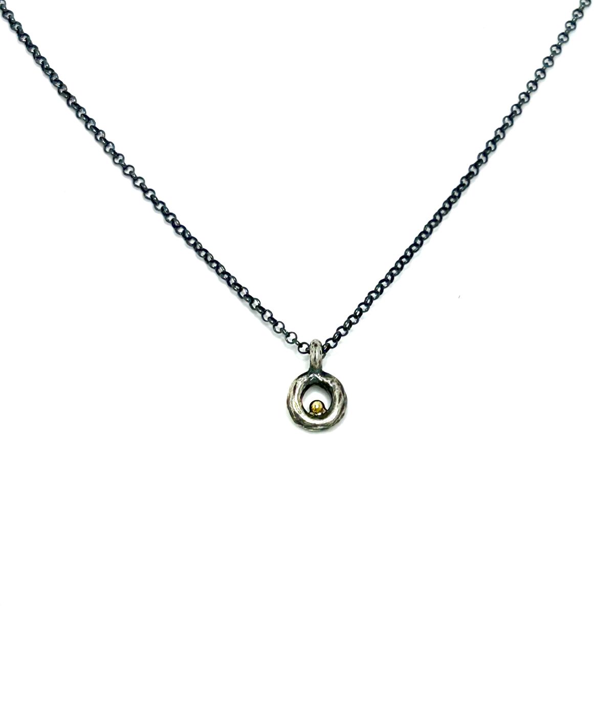 Collaret amb cadena de plata 925 envellida, penjoll massís i piquet d’or groc de 18 Kt.